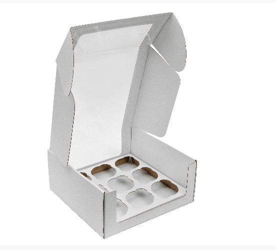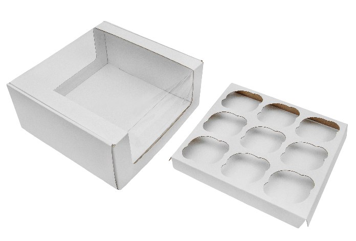 Коробка для капкейков на 9 штук с круглым окном из серии "Fupeco RWinPack" Премиум в белом цвете и размером 242*240*110 мм обеспечивает элегантное и функциональное решение для вашей кондитерской продукции.